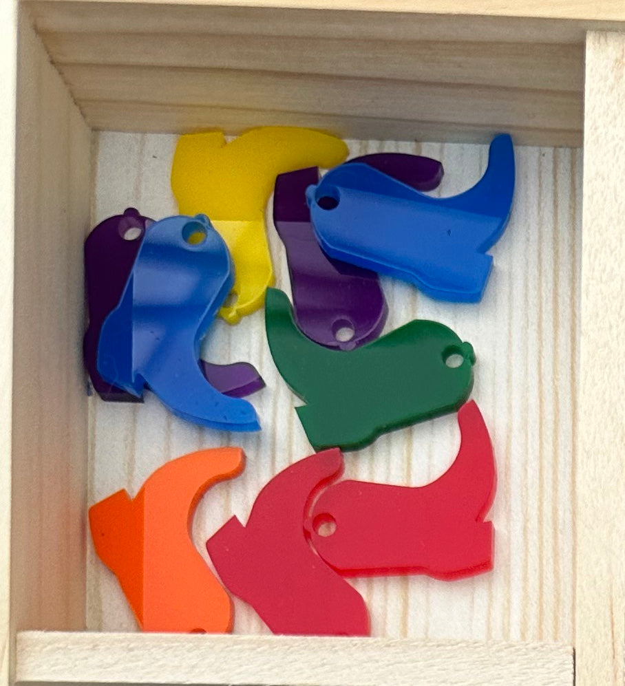 Give your furry friend some wild western flair with our Cowboy Boot Dog Charm! This colorful and lightweight charm is crafted with laser cut acrylic in the shape of a cowboy boot. Perfect for adding a playful touch to your pup's collar. Yee-haw!