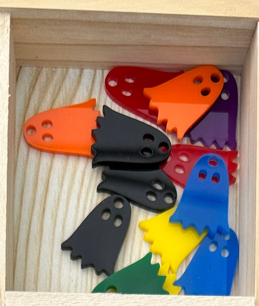 Unleash a spooky charm with our Ghost Dog Charm! This supernatural accessory is laser cut from lightweight acrylic and adds a touch of color to any look. (Canine suitors beware!)