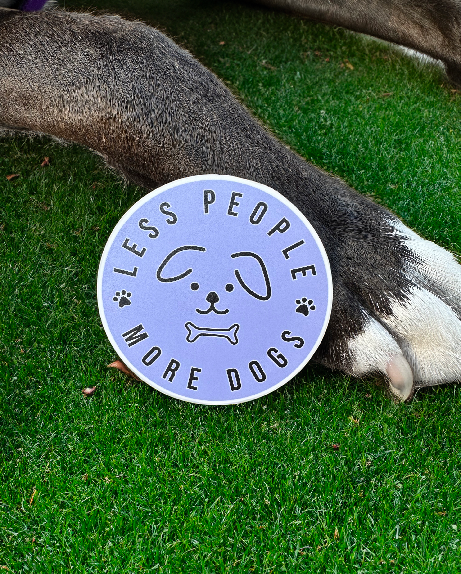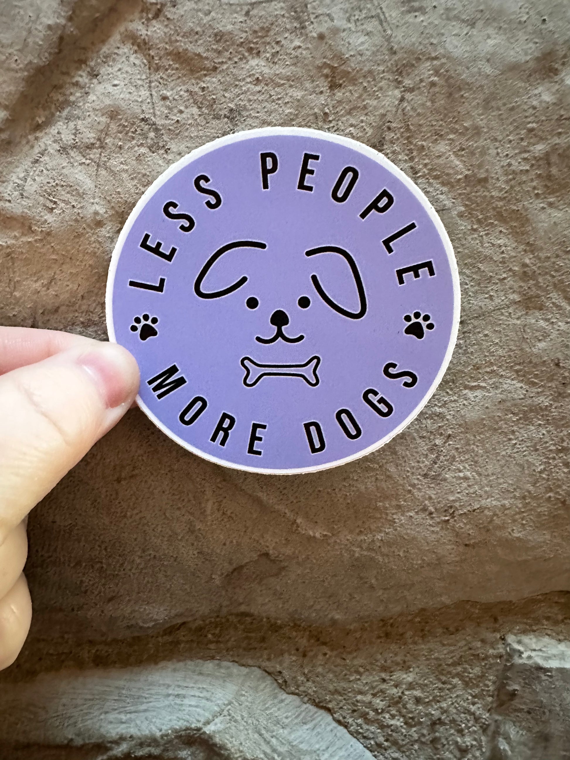Add some canine charm to your belongings with our "Less People More Dogs" sticker. Perfect for dog lovers and anyone looking to add a little quirkiness to their accessories. Stick it on your laptop, water bottle, or anywhere you want to spread some furry friend love!