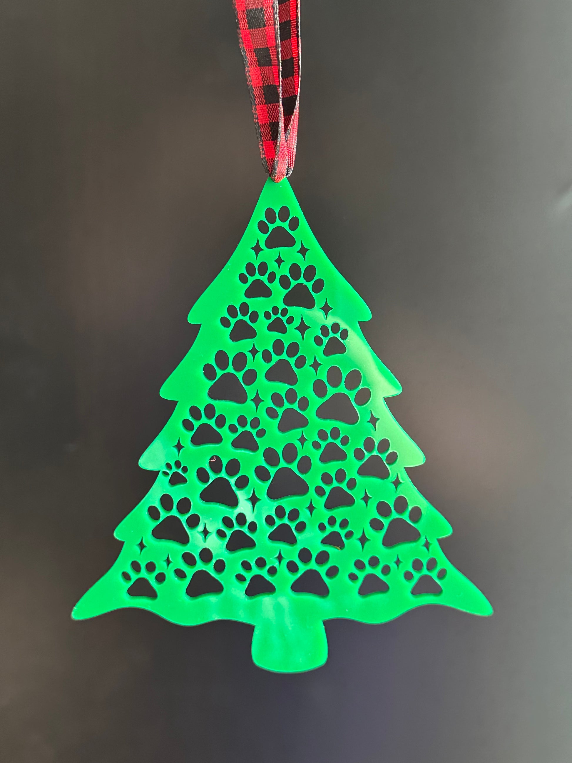 Custom laser cut acrylic Christmas tree with paw prints cut out of it!