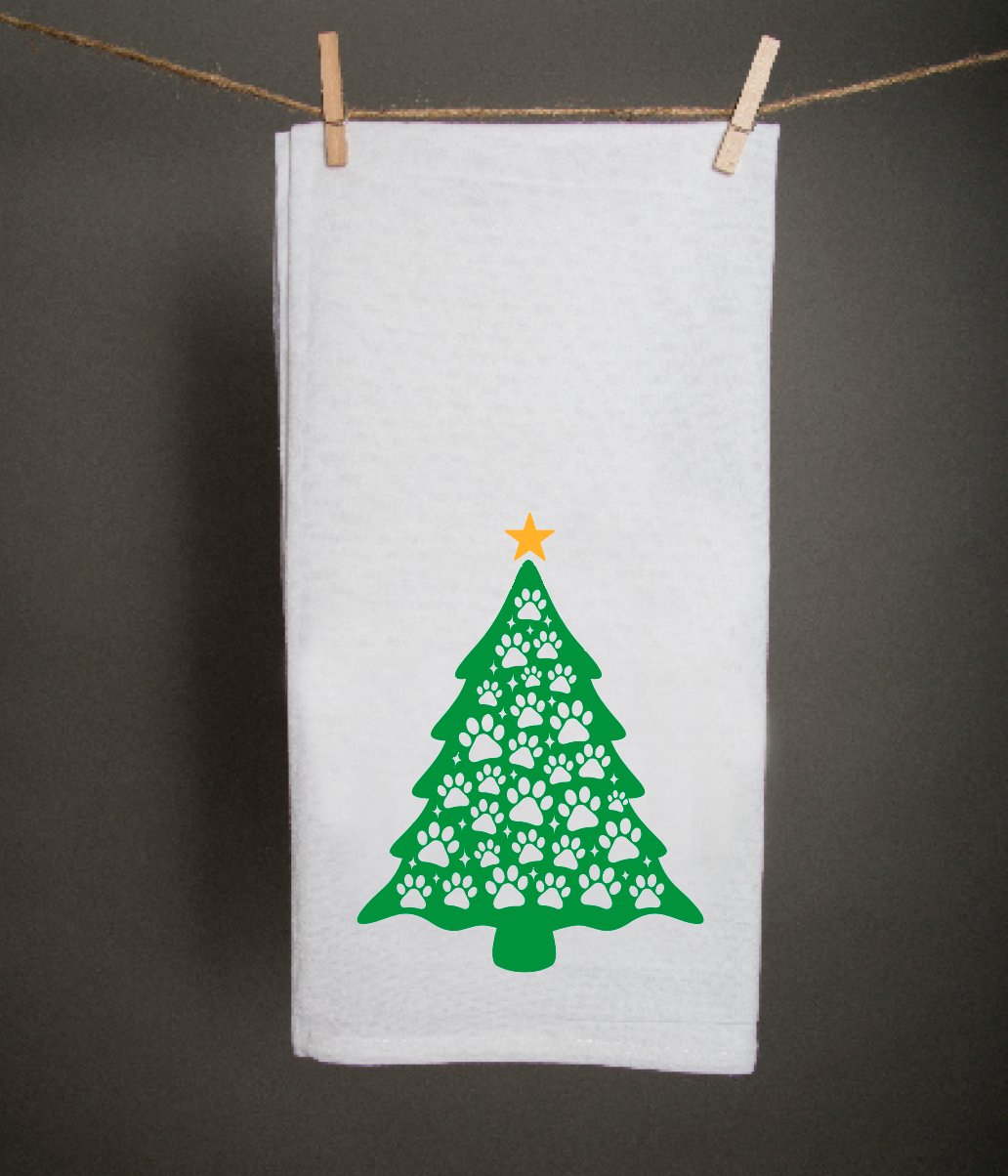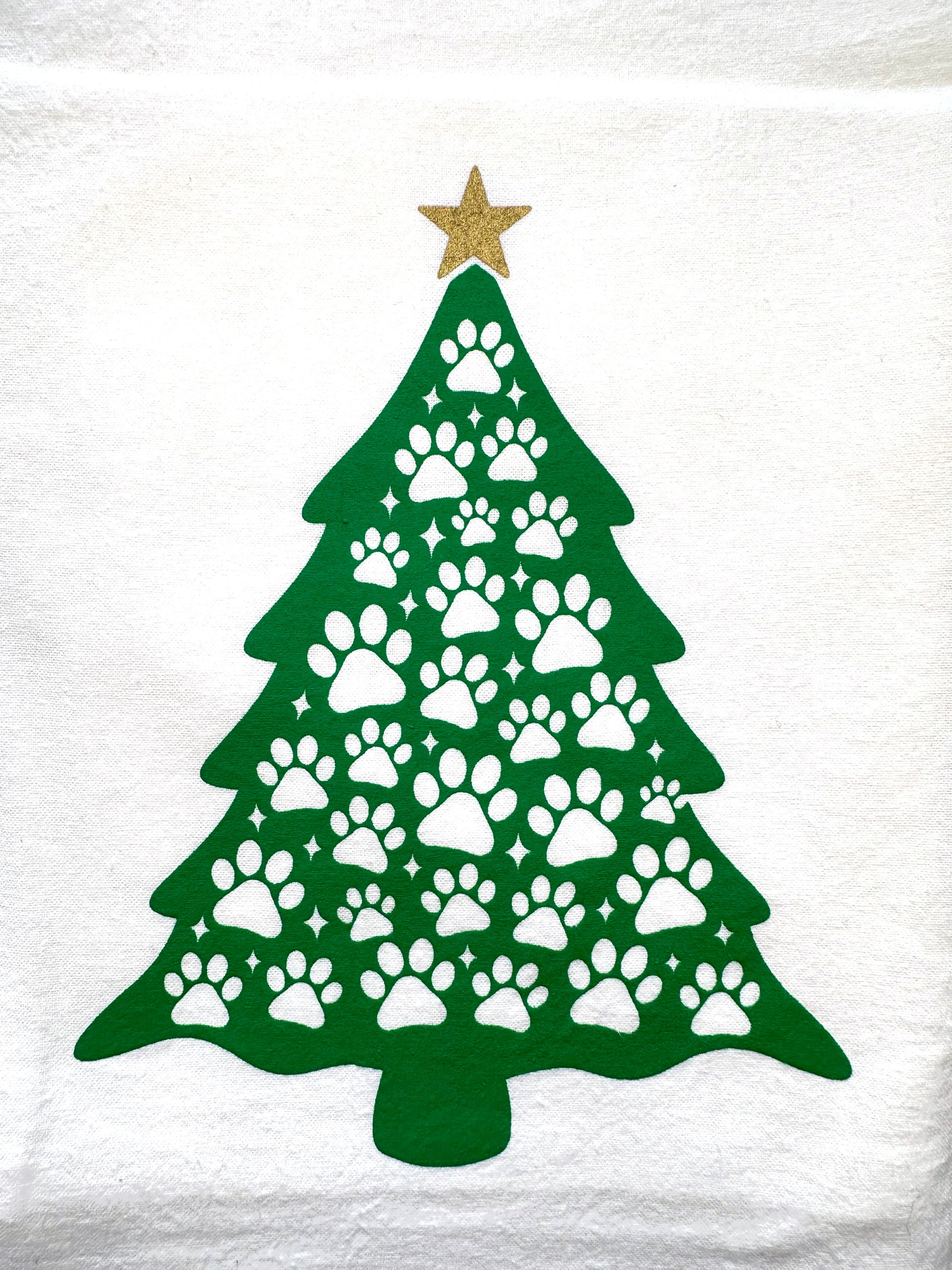 Paw Print Christmas Tree Tea Towel is hand screen-printed by me in my home screen printing studio.